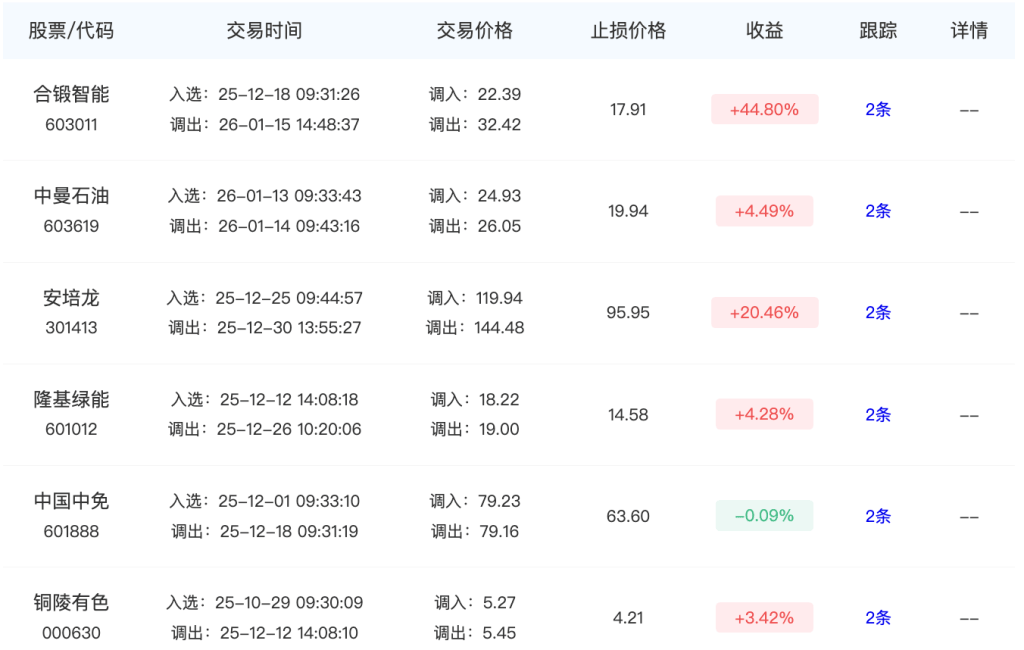 今日脱水金股完结案例——合锻智能。(因为金股是短线量化策略,对于要做中线的同学,参考我们讲过的离场策略即可)这个案例选入的时间是12月18日。到现在大概有1个月了。从12月我们提及相关案例、逻辑,一路能最终走到今天的同学,收获更多的是持股心态和波动应对的经验。