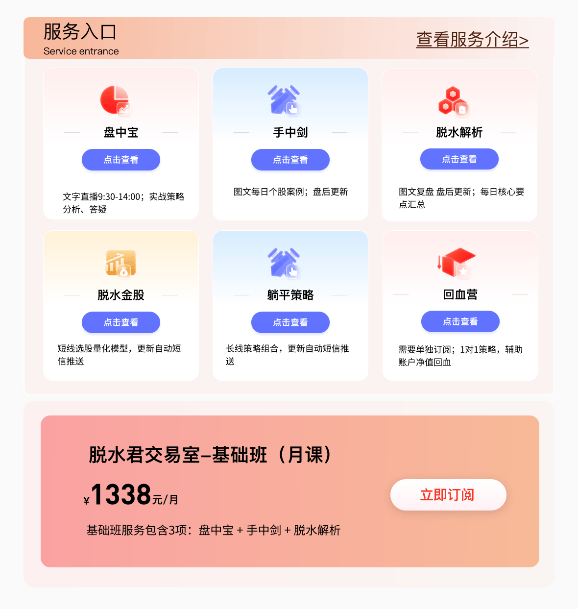 课程包含短中长风格策略讲解、微观宏观策略,专注辅导散户解决实战交易问题、搭建适合自己的交易体系。独家手中剑策略,适合散户上班族。