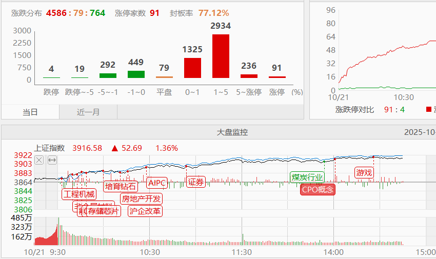 沪指重返3900点,创业板盘中大涨3%,个股4500多家上涨,调整未能延续,反而走了修复,两市成交小幅放大到1.9万亿,赚钱效应有所恢复。今天明显是权重带个股,CPO大块头受光模块出货量上调的利好刺激,集体反弹,从而带动创业板走强。