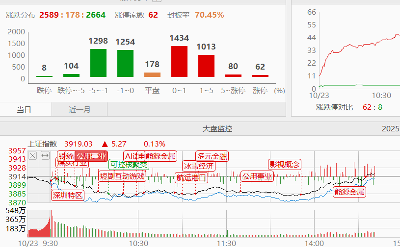 炒股想要长期稳定盈利,就必须得抓大概率赚钱的交易。比如今年6到9月份,创业板沿着20日线走上升趋势,人工智能、机器人、新能源、稀土、黄金等轮番表演。但是目前来看,创业板早已跌破20日线,而且迟迟不能收回,短期趋势从多头变为空头,交易难度急速上升,加上成交金额持续萎缩,这种行情之下,短线仓位就应该休息看戏,别跟市场过不去,受伤的只能是自己。