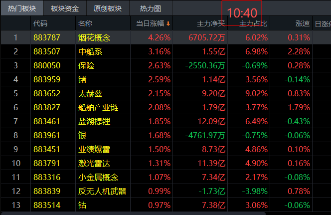 今天上午市场呈现出明显的分化行情。从指数分时图中可以清晰看到,代表指数的白线强势上扬,而代表个股的黄线走势疲弱,两者分化显著。盘中红盘股票数量仅1000家左右,大部分股票处于绿盘状态,这无疑表明今天是典型的指数行情,个股表现相对弱势。