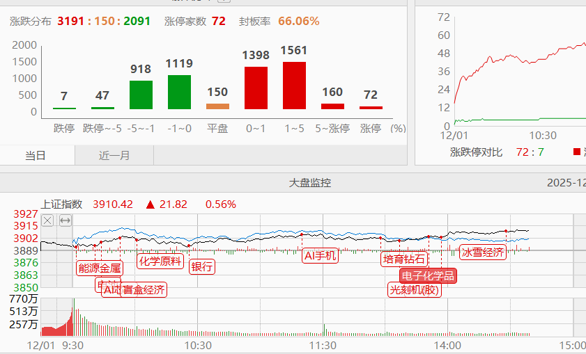 热点板块来看,商业航天周末继续发酵,主要是炒作朱雀三号的火箭发射,很大的未知数,参与这种涨跌完全看消息的博弈风险极大。端侧AI也有所表现,主要受近期字节AI手机和华为AI玩具的消息刺激,本身也是AI应用细分的方向之一,AI应用第一波炒的是纯软件,现在是软硬件结合,可以跟踪观察。