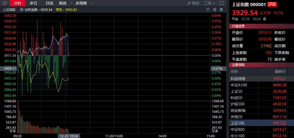 今天上午A股市场分化特征显著。从沪指与创业板指的分时图来看,代表个股的黄线明显弱于代表指数的白线,白线大多在零轴上方运行,而黄线却在零轴下方挣扎。这种现象反映在全市场个股情况上,便是涨少跌多,市场弥漫着浓重的谨慎情绪。正如我们之前所分析的,目前市场指数尚未脱离震荡区域,依然要以强势震荡的性质来看待当前市场。在这种复杂多变的市场环境中,投资策略的选择显得尤为关键。