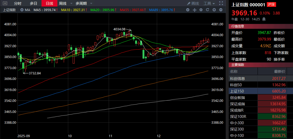 今日沪指低开高走,创业板指同样维持强势震荡,整体市场呈现出典型的强势震荡行情特征。在这样的震荡阶段,我们面临着两种选择:要么暂且休息,以旁观者的姿态静观市场风云变幻,等待更明确的信号出现;要么主动出击,深入挖掘个股机会,尝试通过高抛低吸的策略获取收益。但大家要清楚,当前阶段并非大机会降临之时。只有当市场彻底突破震荡区间,明确走出上升趋势,真正的大机会才会到来。尤其眼下临近新年,在这个关键节点,我们首要目标是守住已有的利润,确保一年的投资成果不被轻易侵蚀。