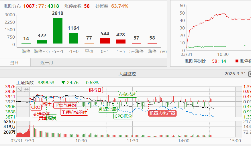 热点方向来看,今天同样乏善可陈。上午受消息刺激,高铁基建方向有所异动,没有任何参与价值。商业航天局部有零星涨停板,冷饭热炒的题材,有啥吸引力呢。午后摩托车概念异动拉升,主要受消息面刺激,掀不起什么浪花。电力方向反复拉锯,鱼[BANNED]情,没什么意思。大家整体还是秉持冷眼旁观的态度,不能心急。