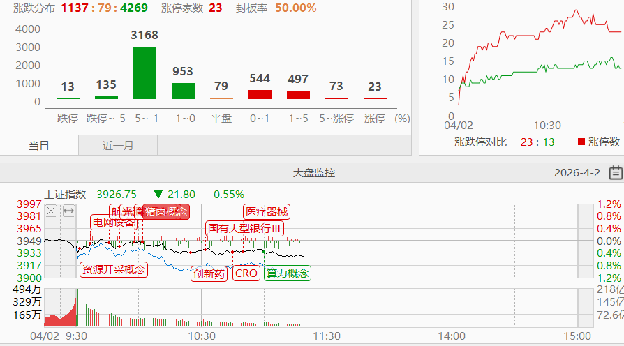今天几大指数再度震荡向下,个股4000多家下跌,成交量缩小到1.8万亿,市场交投清淡,个股无量阴跌,近期市场持续被亏钱效应主导,策略上继续建议大家空仓观望,水平高的选手也只能轻仓关注油气方向,其他方向不能随便开仓。