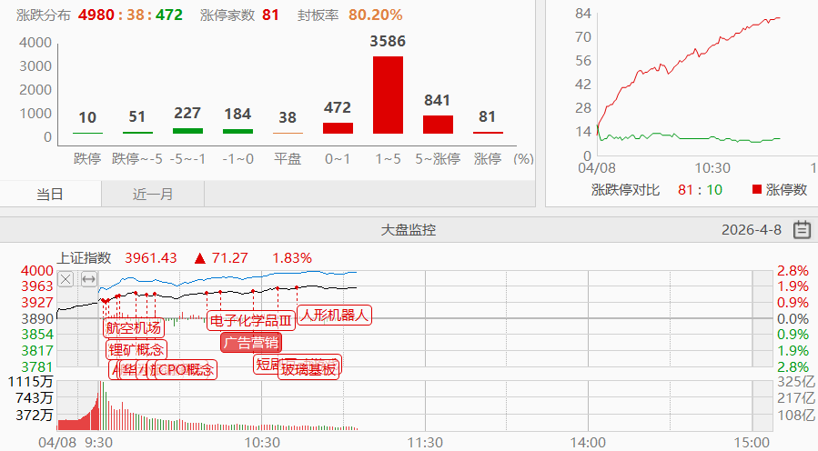 今天A股借着消息面和缓,几大指数出现不同程度的拉升,创业板涨4%,两市成交小幅放大,全天有望达到2.4万亿,个股近5000家修复。技术上沪指目前已经触及箱体震荡上沿的压力,创业板今天大涨之后也被上方20、55日中期均线盖头,在大趋势下行的情况下,单日反弹持续性存疑,我认为大家不急于一时,耐心观察反弹持续性如何。