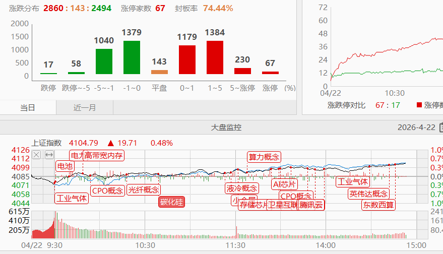 上午盘面延续昨日分歧震荡,但是液冷双龙相继打开跌停板放人,代表市场做多热情依然高涨,午后回流力度加大,CPO大票新高带动创业板指数再度上涨,海外线连续走强顺便也把国产算力方向带起来,科技方向继续群魔乱舞。