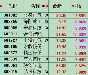 接近封板的有:英杰电气、久盛电气、精达股份、......