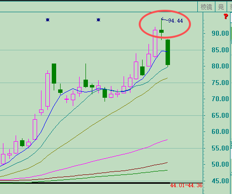 二是个股走势上,见顶预期:高位十字星尤其是阴线十字星,次日低开低走,这个这走势一般防止见顶,需谨慎对待和逃离。